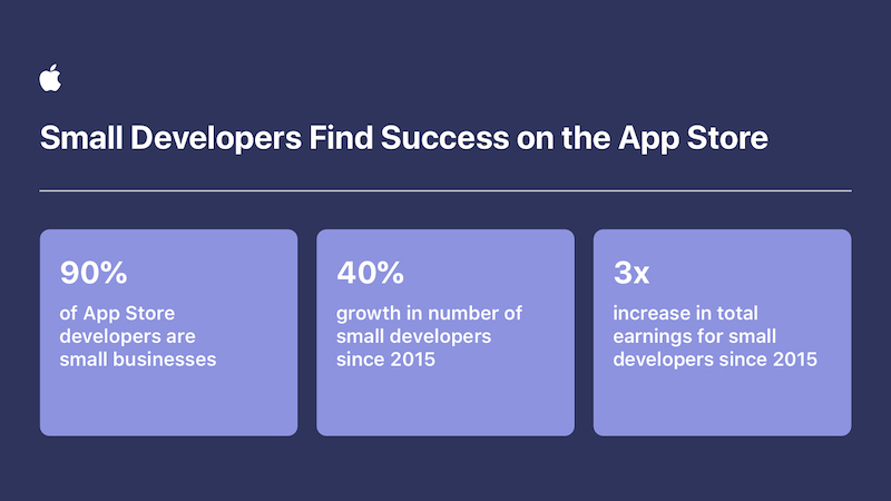 研讨显现,2015 年以来,全球小型开发者的数量增加了 40%,更在一切 App Store 开发者中占有了 90% 以上。这项研讨将在指定年份中悉数 app 累积下载量小于 100 万次,且收入小于 100 万美元的开发者界说为“小型开发者”。