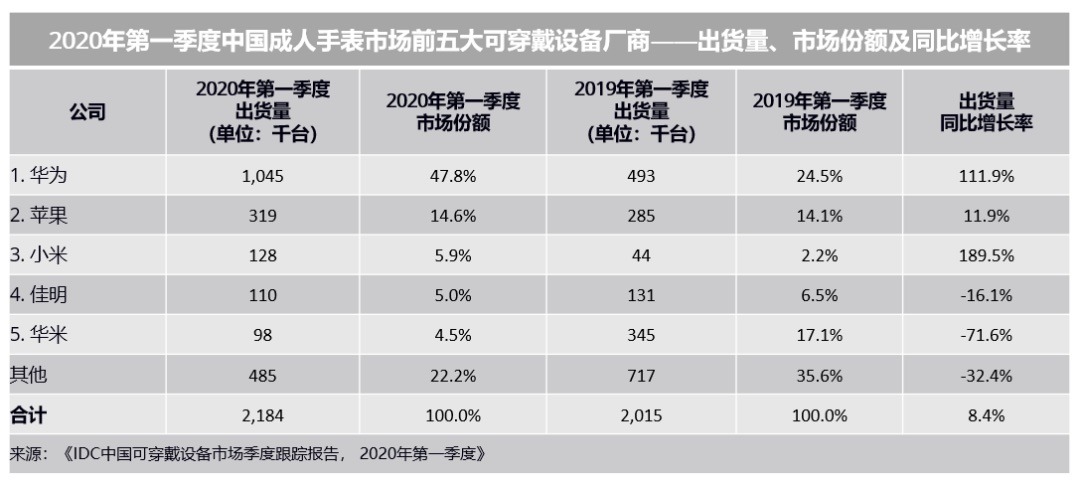 我国可穿戴设备商场季度盯梢陈述,2020 年第一季度