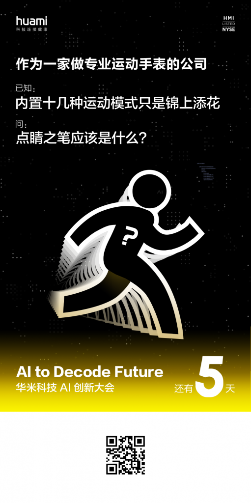 近来,国内可穿戴设备华米科技宣告将在6月15日举行AI立异大会,本次AI立异大会的主题是:AI to Decode Future!(用 AI 解构未来),要点放在AI技能和应用上。继前几天连续预热了BioTracker™PPG生物追寻光学传感器、AI运动形式等技能后,今日其预热海报中暗示了华米科技在可穿戴设备AI芯片大将有新的“惊喜”。
