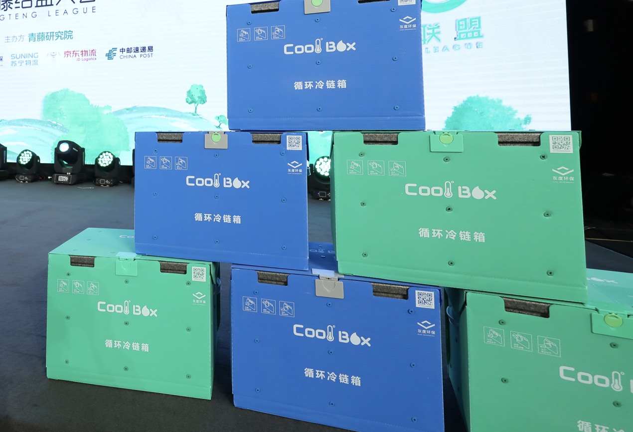 Cool Box 循环冷链箱则具有了以下特色:箱体和拉环均由灰度环保自主研制及出产,密封保鲜、食物级内膜维护,耐冷耐热,专利锁扣规划、外壳资料可100%循环运用,可快速折叠、可重复运用,在节能减耗的一同,充沛满意物流运送需求,不只能够满意人们对新鲜食物的需求,还能够使食物在运送途中尽量削减丢失和糟蹋。而市面上现在针对冷链运送进程中运用的保温箱一般为全体式,不能折叠拆装、收回运用时空箱储运本钱较高级问题,所以这一立异产品将有用处理了这个职业痛点。